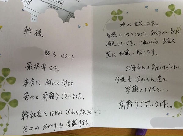 今回、完成の際に施主様のお母様より、お手紙を頂きました。